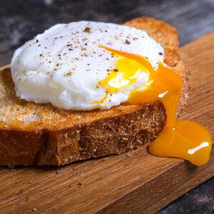 לתוך ספל גדול המתאים למיקרו שברו ביצה אחת והוסיפו שליש כוס מים. כסו את הספל וחממו כ-50 שניות. אם הביצה לא מוכנה, חממו 10 שניות נוספות. הגישו עם צנים פריך.