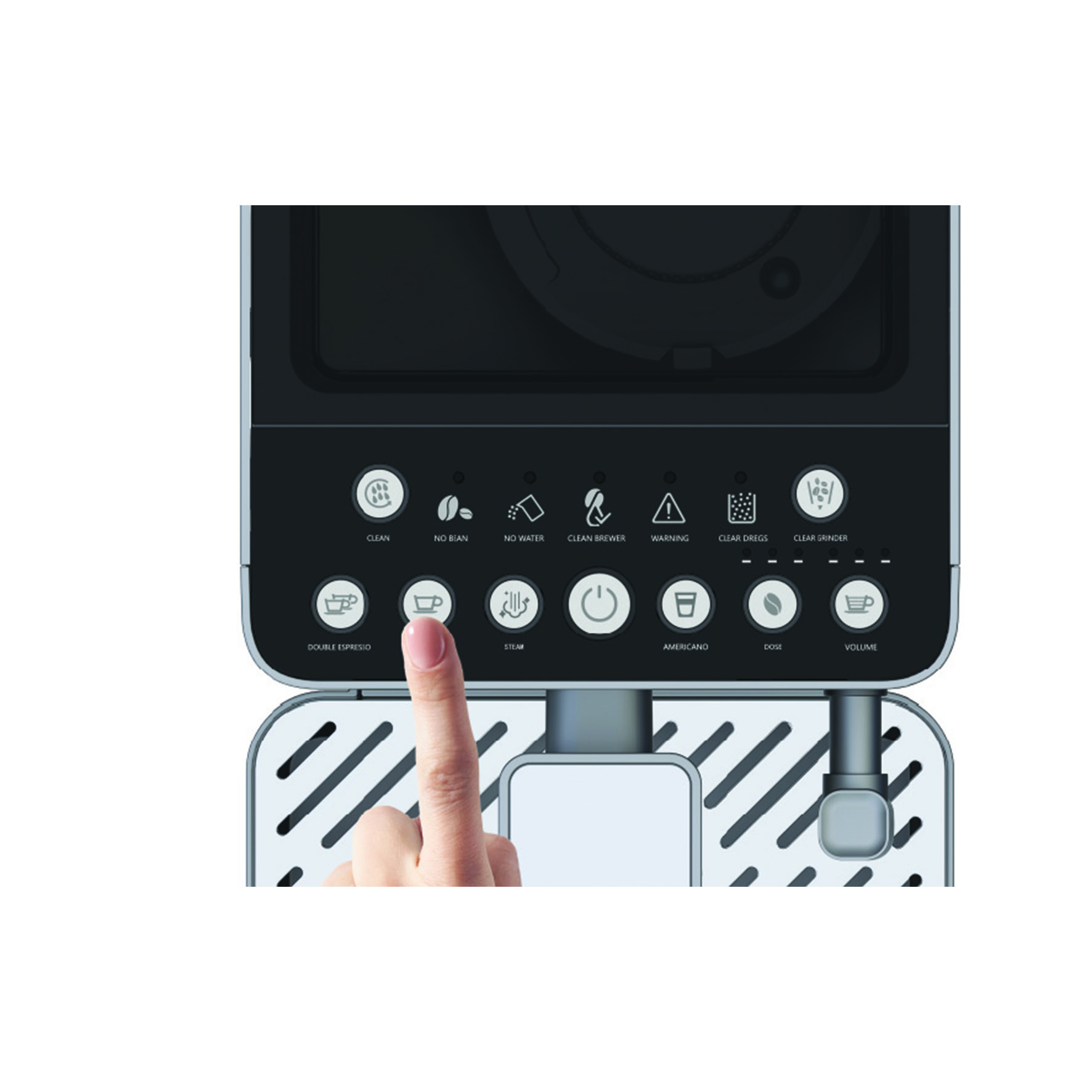 1. אמריקנו 2. אספרסו 3. אספרסו כפול 4. אדים 5. כמות קפה 6. ניקוי 7. הסרת שאריות קפה.
